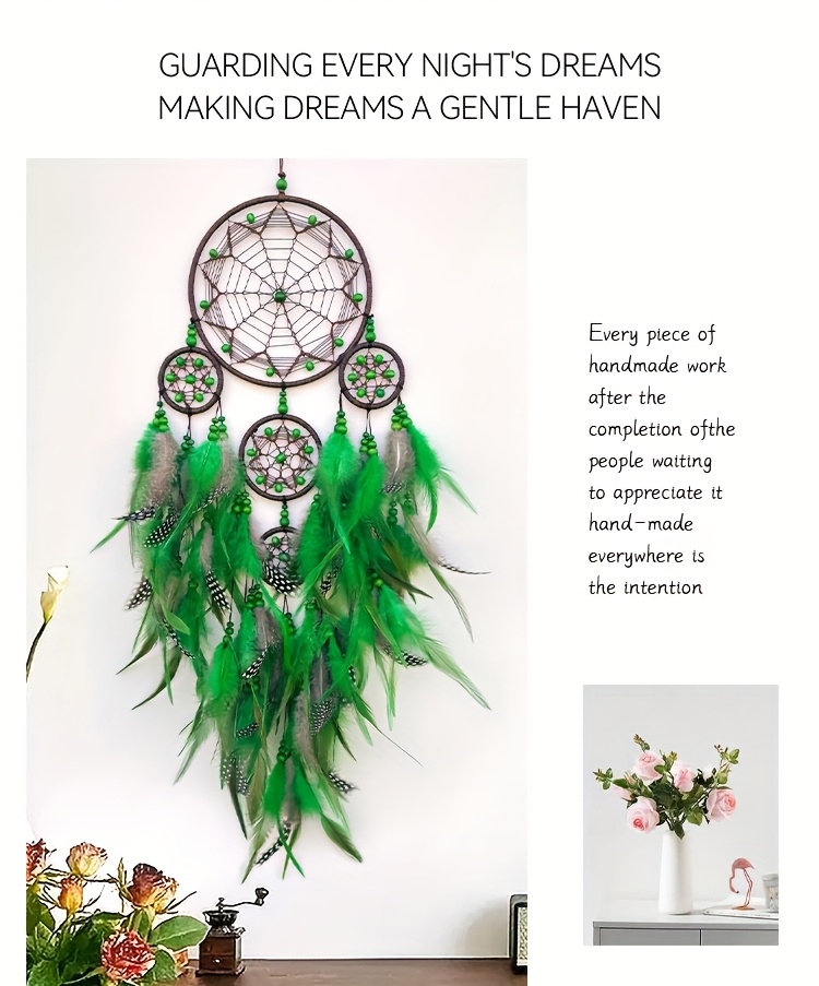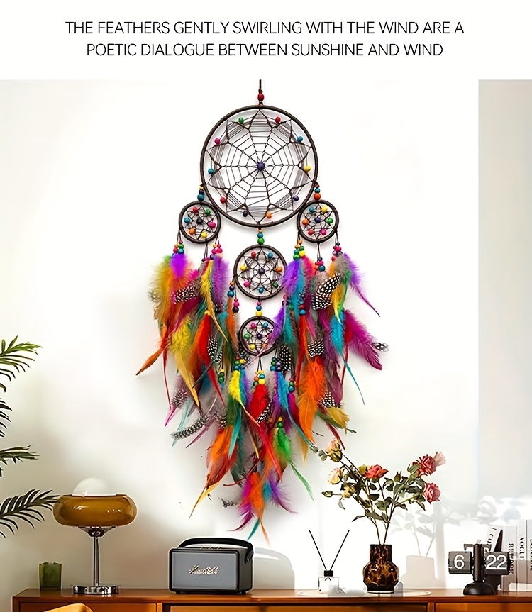 Handmade Dreamcatcher with Artificial Feathers, Guardian of Sweet Dreams, Night Companion, Bohemian Style Wall Hanging, Wind Chime Wall Decor, Essential Bedroom Decoration, Home Pendant Ornament