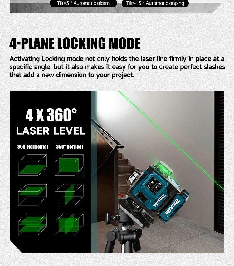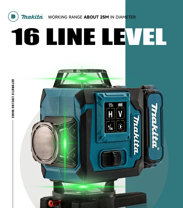 Makita 2025 Digital 360-Degree X4 16-Line Outdoor Laser Level Self-Levelling Vertical Cross-Line Tool for Precision Measurement
